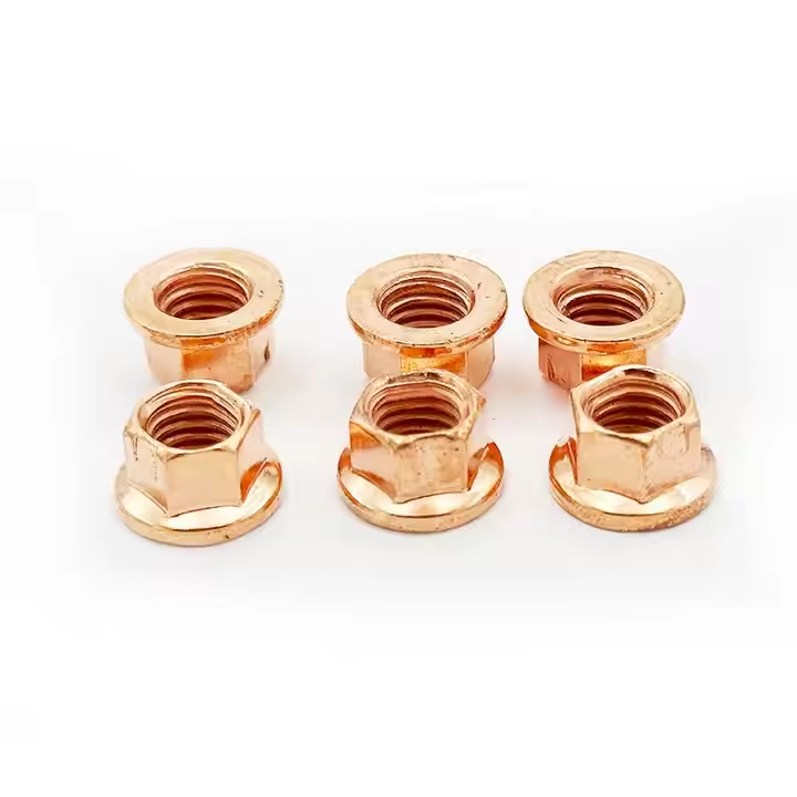 Securing: Thread the M8 copper nut onto the bolt, tightening to 15-20 ft-lbs with a 12mm or 13mm wrench in a steady motion. The self-locking feature eliminates the need for lock washers, as noted in Amazon reviews for similar nuts.