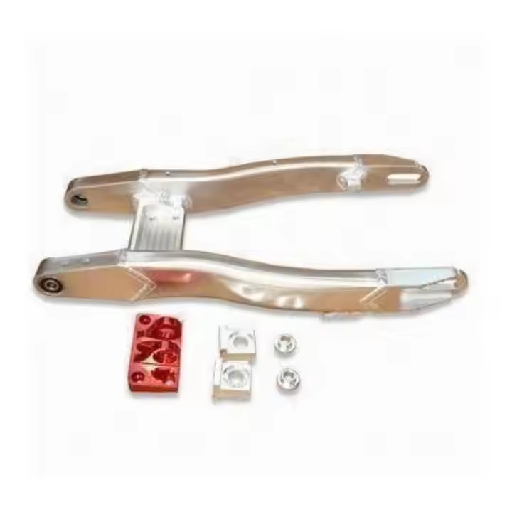 A Motorcycle Welded Swing Arm is a critical suspension component that pivots on the frame, connecting the rear wheel to the chassis and supporting the shock absorber and linkage system for smooth suspension travel. Made from CNC-machined aluminum with welded joints for added strength, it houses bearings, chain guides, and mounts for sprocket carriers, ensuring proper wheel alignment and shock absorption. This swing arm enhances handling precision, aligning with your focus on components like sprocket carriers and engine mount adapter plates. Unlike cast swing arms, welded designs offer superior strength-to-weight ratios, ideal for high-impact motocross or rugged trail conditions.